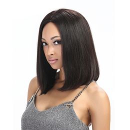 Mode Damen Perucken Schwarz Mittellange Glatte Haare Perucke Bobo Frisur Perucken